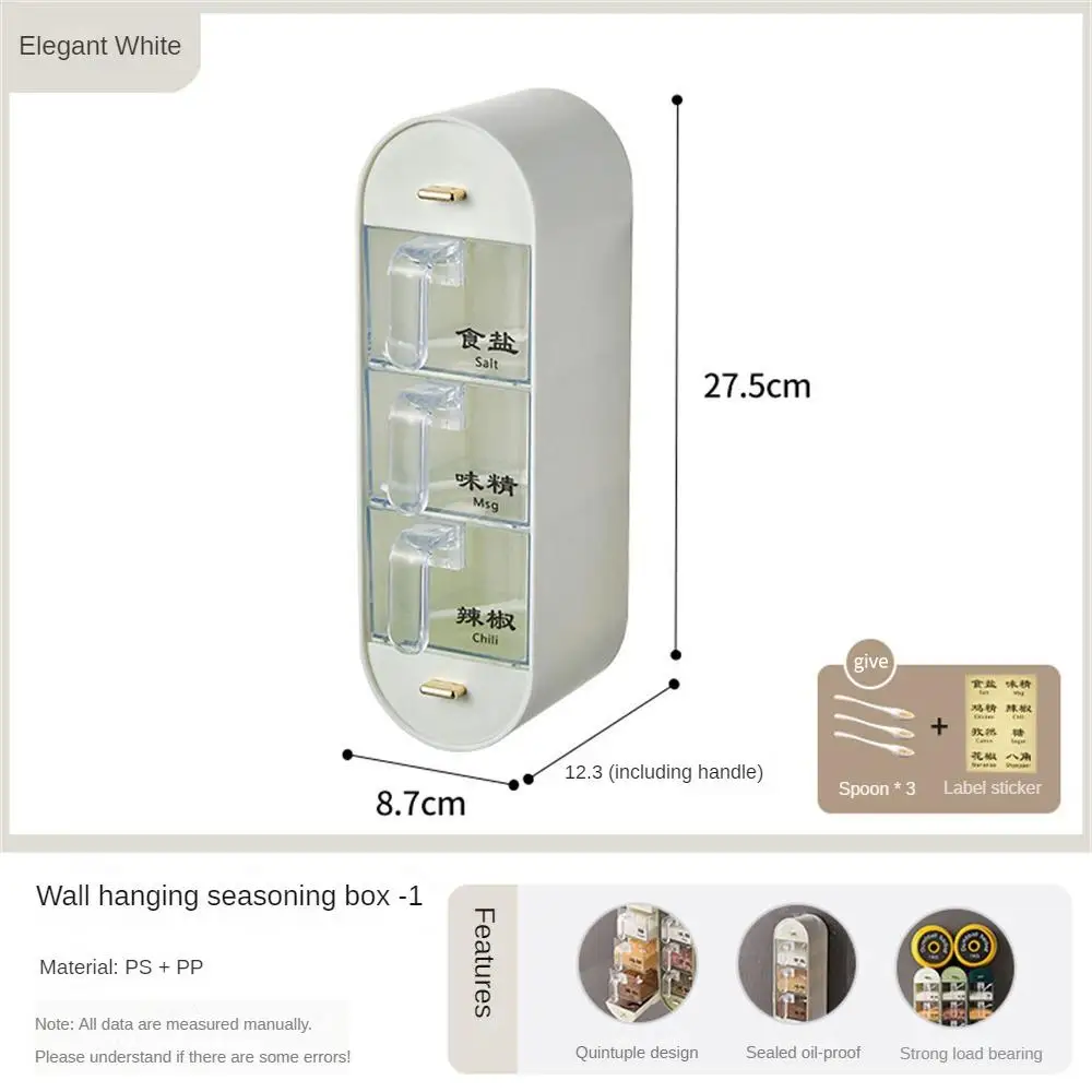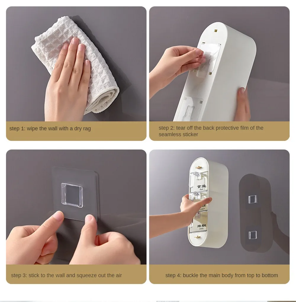 Sa conception à cinq compartiments distincts vous permet de stocker différentes épices ou herbes aromatiques, tout en maintenant un ordre impeccable. Grâce à son design mural et sans perforation, ce support pour épices libère de l'espace sur vos plans de travail tout en supportant une charge solide, même dans les petits espaces. La boîte garantit également une parfaite protection contre l'humidité, la poussière, et les insectes grâce à un système de fermeture étanche qui garde vos condiments frais et secs.