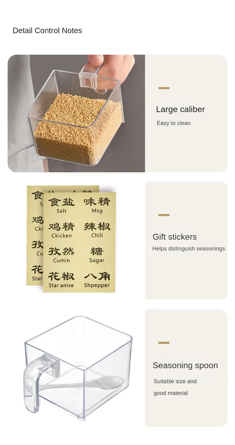 - Compartiments multiples : Stockez vos épices, herbes et condiments dans cinq compartiments séparés avec un joint étanche pour préserver la fraîcheur.