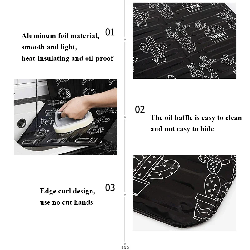 - Protection Pratique : Agissant comme un véritable bouclier autour de votre plaque de cuisson, il protège efficacement vos murs des dommages causés par l'huile, réduisant ainsi le temps passé à nettoyer.