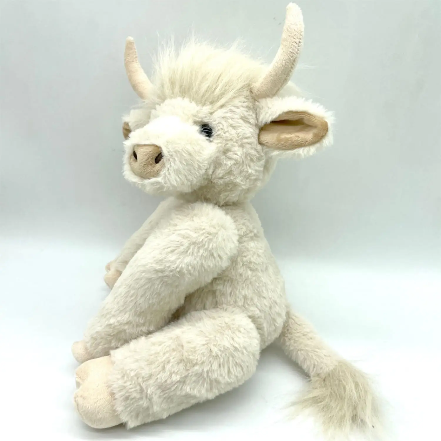 Un design réaliste et charmant : Inspirée des célèbres vaches Highland d'Écosse, cette peluche se distingue par ses longs poils doux et ses grandes cornes. Ses yeux expressifs et son sourire discret apportent une touche de tendresse qui saura conquérir le cœur de tous.