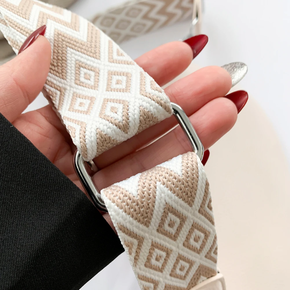- Style Géométrique : Motif géométrique moderne et sangle ajustable, permettant de porter le sac en bandoulière ou sur l'épaule.