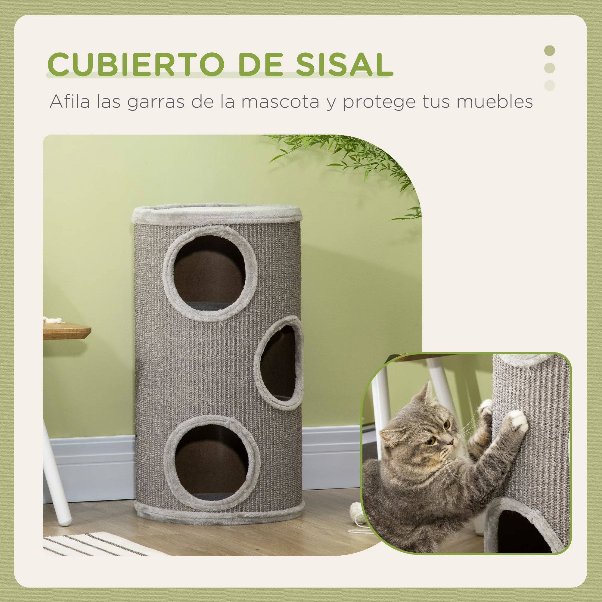 Ce griffoir combine un design élégant et des fonctionnalités pensées pour les chats. Avec ses trois espaces distincts, votre chat pourra explorer, grimper et se reposer en toute tranquillité. Les plateformes sont connectées entre elles par des trous internes, permettant à votre félin de circuler librement à l’intérieur. Chaque entrée est entourée d’une bordure en peluche douce pour un confort optimal, et la surface supérieure est également recouverte de peluche, parfaite pour les siestes en hauteur.
